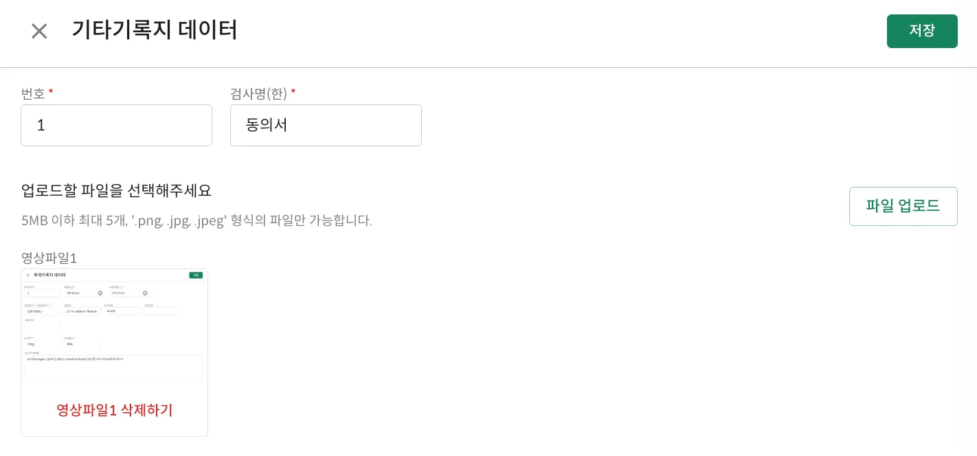 검사명 수정, 파일 업로드, 파일 삭제 가능하며, 항목 추가 원하실 경우 스마트널스 ENR로 문의 부탁드립니다.