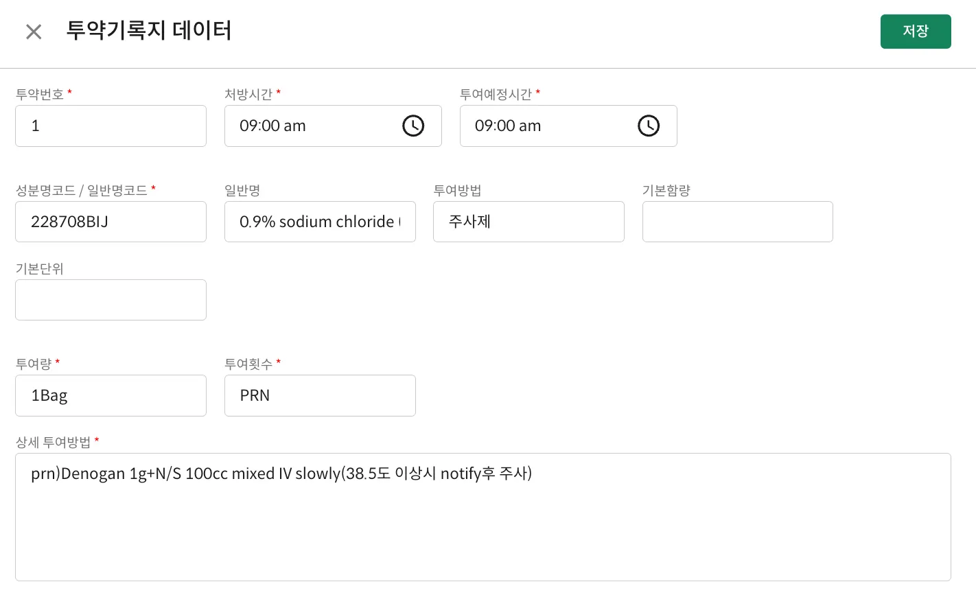 처방시간, 투여예정시간, 투여량, 투여횟수, 상세투여방법은 수정 가능하며, 약물 추가 원하실 경우 스마트널스 ENR로 문의 부탁드립니다.